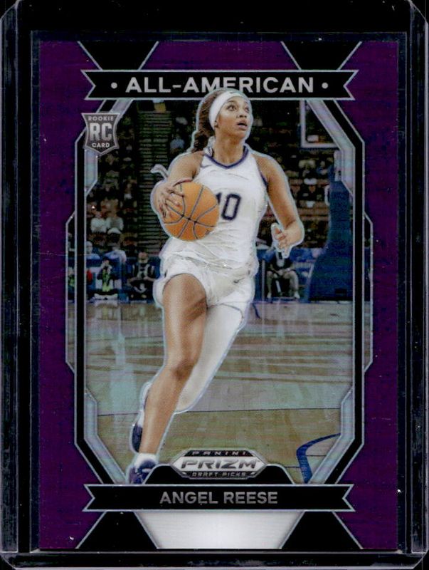 The Angel Reese 2024 Prizm Draft Picks #6 All-American - Purple /75 Rookie card is 1 of 240 Angel Reese's card variations in the 2024 Prizm Draft Picks set being tracked by Sports Card Investor, including #38b Base, #38 Base, #38 Variation, #38 Green, and #38b Green.