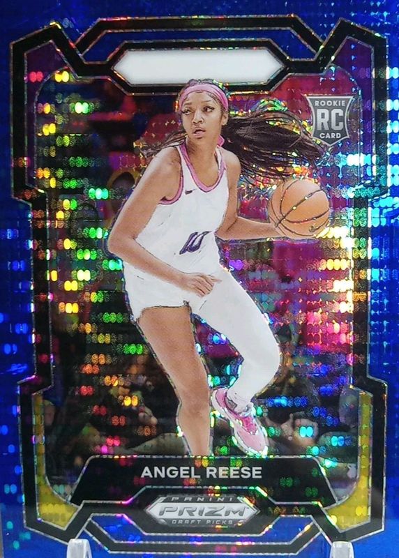The Angel Reese 2024 Prizm Draft Picks #38 Blue Pulsar /99 Rookie card in Raw condition has moved up $3.95 (+26.3%) in the last 30 days and was last sold for $18.95 .