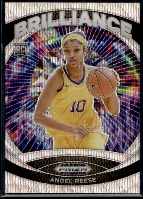 The Angel Reese 2024 Prizm Draft Picks #12 Brilliance - Wave /99 Rookie card is 1 of 240 Angel Reese's card variations in the 2024 Prizm Draft Picks set being tracked by Sports Card Investor, including #38b Base, #38 Base, #38 Variation, #38 Green, and #38b Green.