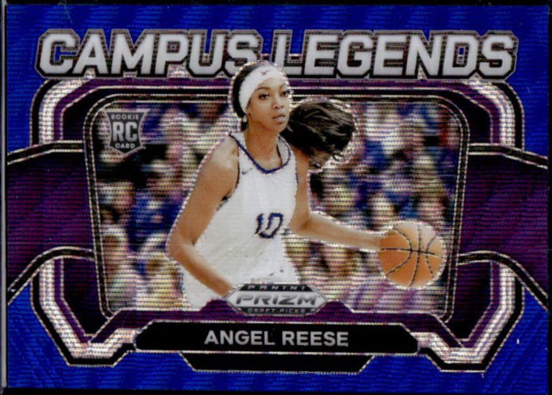 The Angel Reese 2024 Prizm Draft Picks #4 Campus Legends - Blue Wave /249 Rookie card is 1 of 240 Angel Reese's card variations in the 2024 Prizm Draft Picks set being tracked by Sports Card Investor, including #38b Base, #38 Base, #38 Variation, #38 Green, and #38b Green.