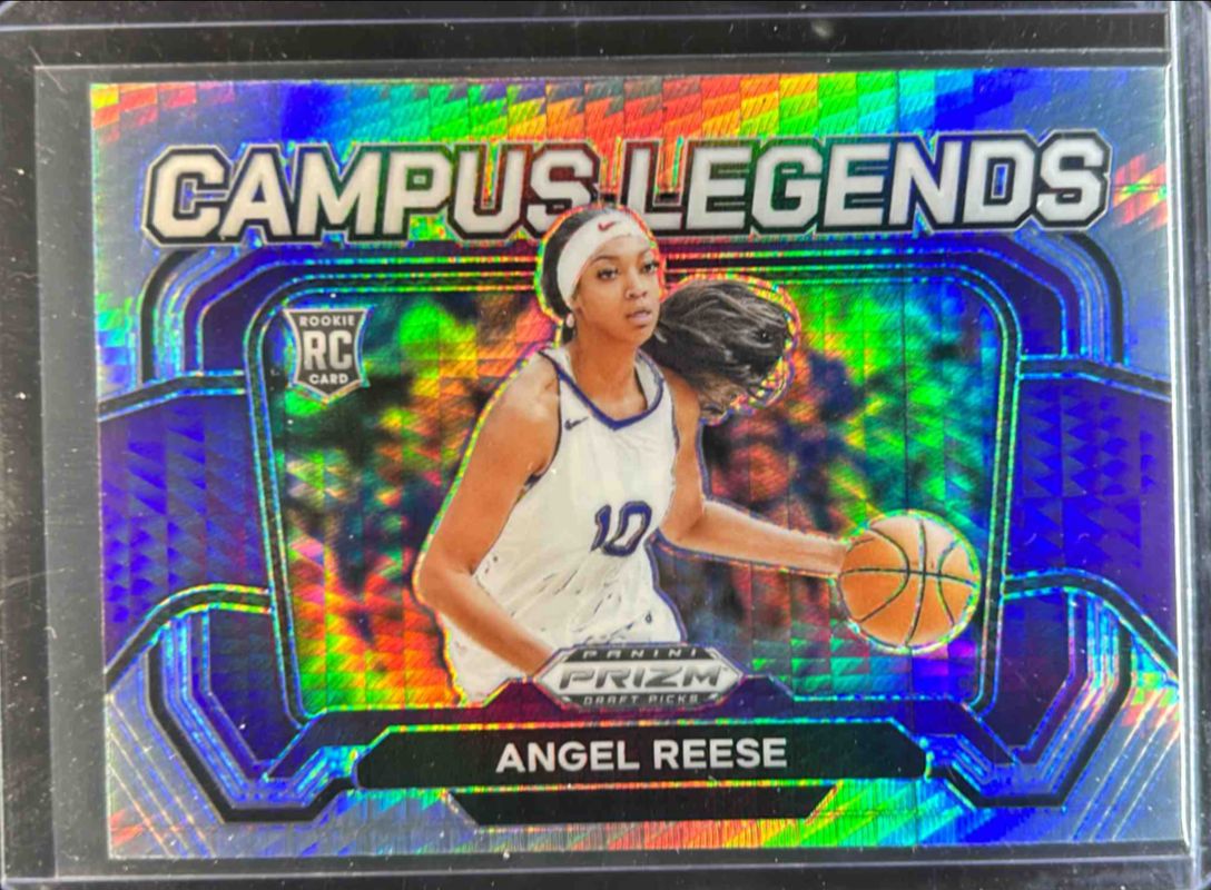 The Angel Reese 2024 Prizm Draft Picks #4 Campus Legends - Hyper Rookie card is 1 of 240 Angel Reese's card variations in the 2024 Prizm Draft Picks set being tracked by Sports Card Investor, including #38b Base, #38 Base, #38 Variation, #38 Green, and #38b Green.