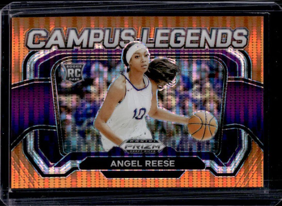 The Angel Reese 2024 Prizm Draft Picks #4 Campus Legends - Orange Pulsar /49 Rookie card is 1 of 240 Angel Reese's card variations in the 2024 Prizm Draft Picks set being tracked by Sports Card Investor, including #38b Base, #38 Base, #38 Variation, #38 Green, and #38b Green.