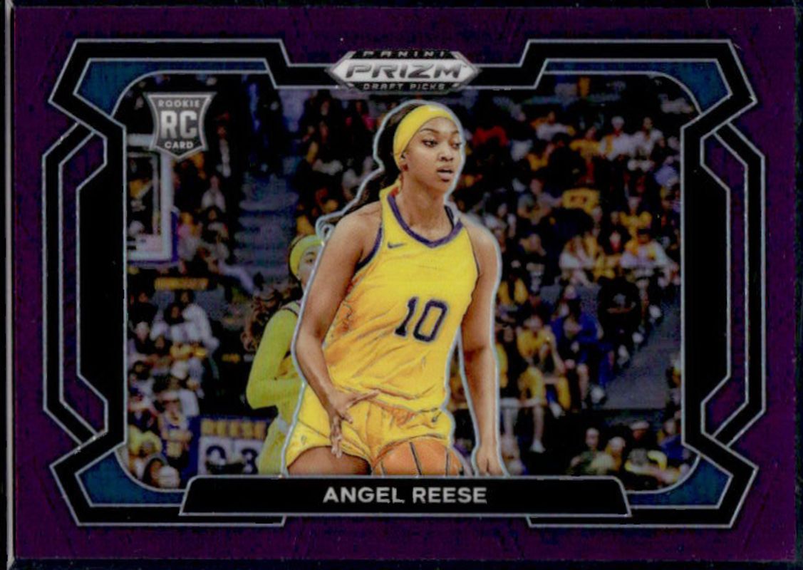 The Angel Reese 2024 Prizm Draft Picks #38b Purple /75 Rookie card is 1 of 240 Angel Reese's card variations in the 2024 Prizm Draft Picks set being tracked by Sports Card Investor, including #38b Base, #38 Base, #38 Variation, #38 Green, and #38b Green.