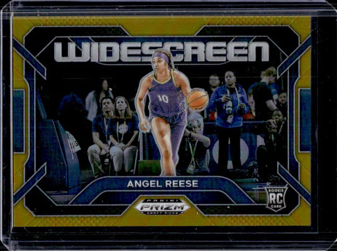 The Angel Reese 2024 Prizm Draft Picks #13 Widescreen - Gold /10 Rookie card is 1 of 240 Angel Reese's card variations in the 2024 Prizm Draft Picks set being tracked by Sports Card Investor, including #38b Base, #38 Base, #38 Variation, #38 Green, and #38b Green.