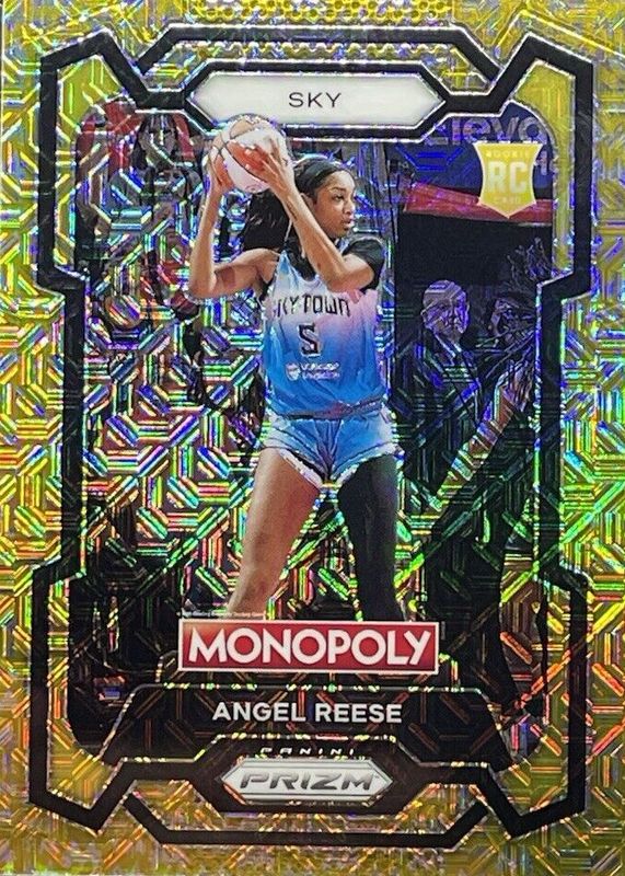 The Angel Reese 2024 Prizm Monopoly WNBA #68 Gold Millionaire Shimmer /500 Rookie card in Raw condition has not changed in price in the last 30 days and was last sold for $34.25 .