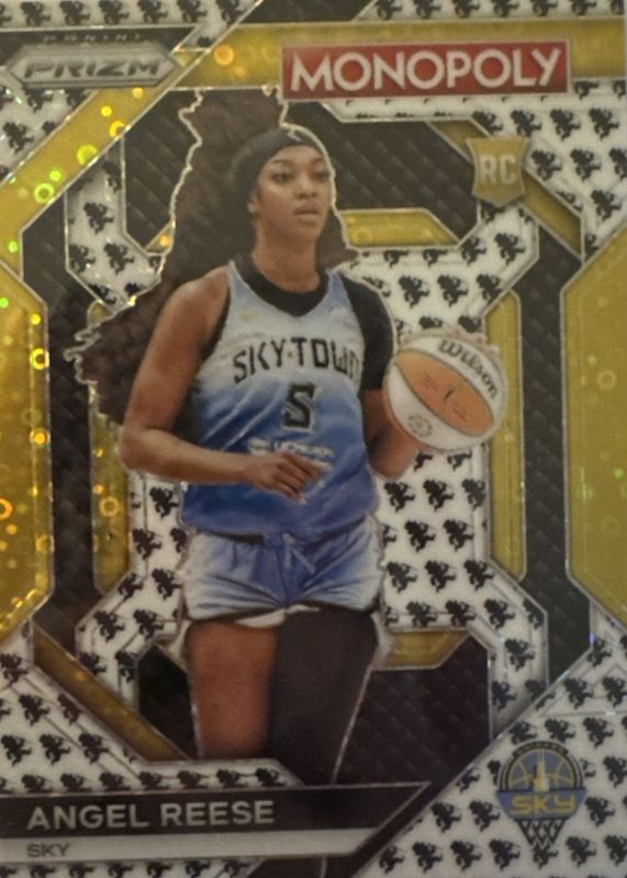 The Angel Reese 2024 Prizm Monopoly WNBA #WNBA16 Insert - Monopoly Man Black & White Rookie card in Raw condition has not changed in price in the last 30 days and was last sold for $15.50 .