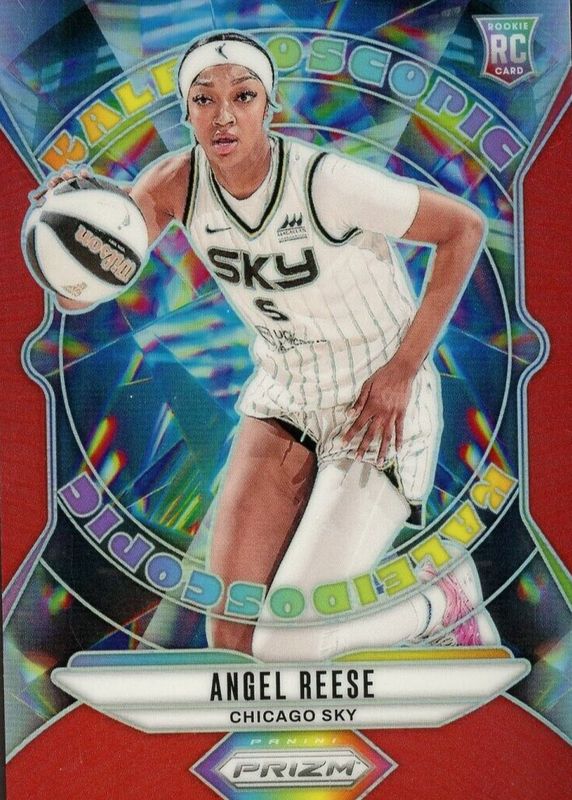 The Angel Reese 2024 Prizm WNBA #1 Kaleidoscopic - Red /99 Rookie card in Raw condition has not changed in price in the last 30 days and was last sold for $16.05 .