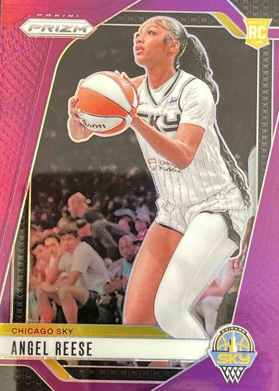 The Angel Reese 2024 Prizm WNBA #10 Purple /149 Rookie card in Raw condition has not changed in price in the last 30 days and was last sold for $23.75 .