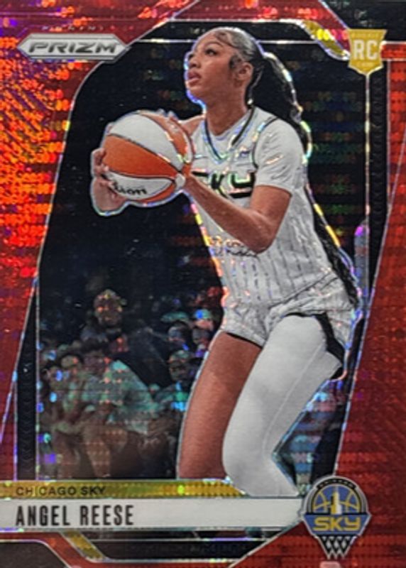 The Angel Reese 2024 Prizm WNBA #10 Red Pulsar /299 Rookie card in Raw condition has not changed in price in the last 30 days and was last sold for $14.99 .