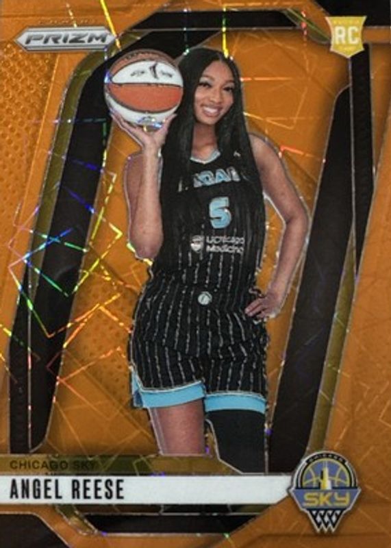 The Angel Reese 2024 Prizm WNBA #147 Rookie Variation - Orange Velocity card in Raw condition has moved up $0.50 (+10.0%) in the last 30 days and was last sold for $5.50 .