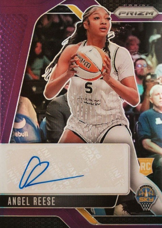The Angel Reese 2024 Prizm WNBA #SG-AR Signatures - Purple /49 Rookie card in Raw condition has not changed in price in the last 30 days and was last sold for $120.00 .