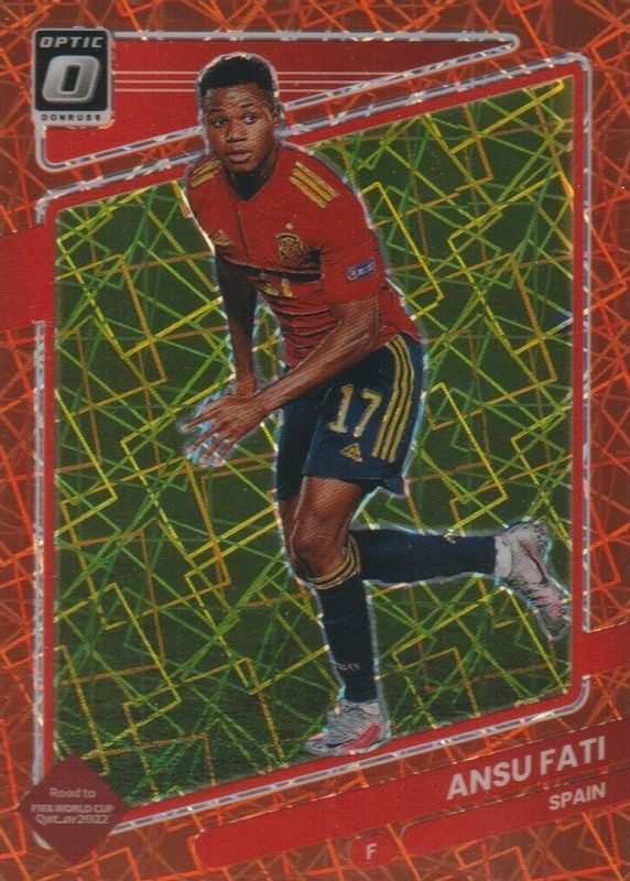 This card is 1 of 33 Ansu Fati's card variations in the 2021 Donruss set being tracked by Sports Card Investor, including Base, Holo Green Laser, Holo Orange Laser, Press Proof Gold /349, and Press Proof Purple /199.