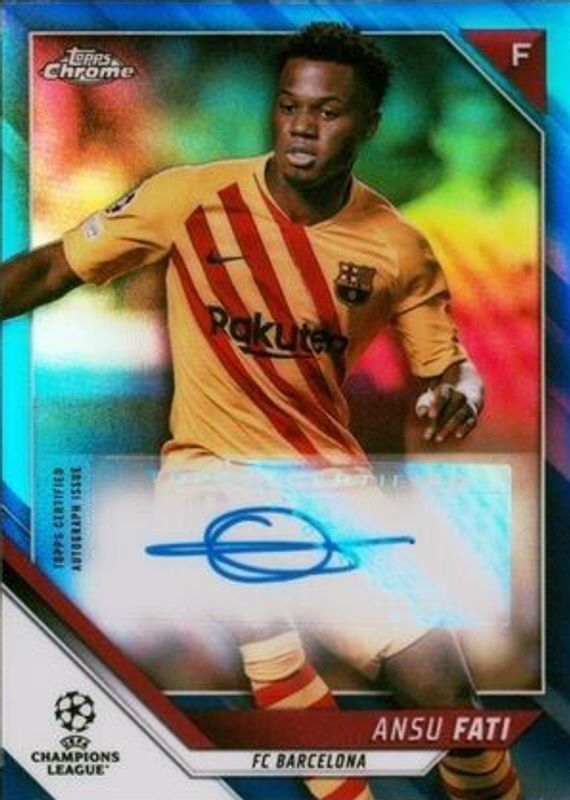 2021-22 TOPPS CHROME UEFA SOCCER ANSU FATI CA-AF BLUE REFRACTOR AUTO 145/150