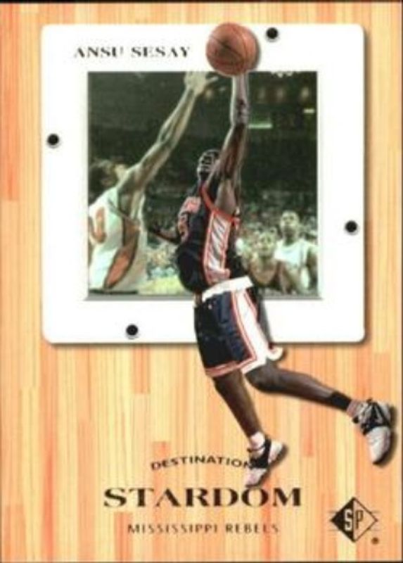 The Ansu Sesay 1998 SP Top Prospects #18 Destination Stardom Rookie card is 1 of 6 Ansu Sesay's card variations in the 1998 SP Top Prospects set being tracked by Sports Card Investor, including #10 Base, #56 Base, #10 President's Edition /10, #56 President's Edition /10, and #AS Vital Signs /23.