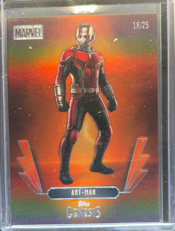 The Ant-Man 2025 Topps Disney Genesis #92 Orange Foil /25 card is 1 of 6 Ant-Man's card variations in the 2025 Topps Disney Genesis set being tracked by Sports Card Investor, including Blue Foil /75, Gold Foil /50, Purple Foil /15, Red Shimmer /5, and Silver Circles /1.