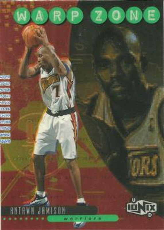 The Antawn Jamison 1998 Upper Deck Ionix #Z7 Warp Zone Rookie card is 1 of 4 Antawn Jamison's card variations in the 1998 Upper Deck Ionix set being tracked by Sports Card Investor, including Base, Reciprocal /100, and Kinetix.
