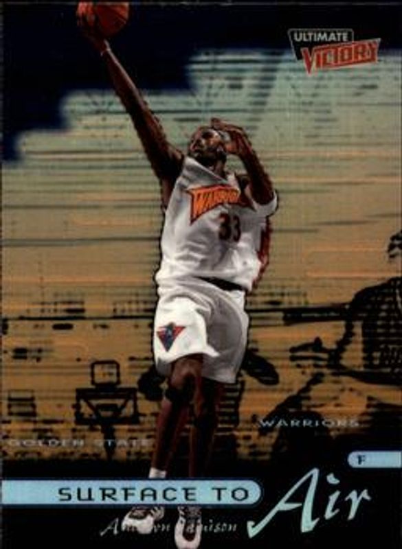 The Antawn Jamison 1999 Upper Deck Ultimate Victory #SA2 Surface to Air card is 1 of 5 Antawn Jamison's card variations in the 1999 Upper Deck Ultimate Victory set being tracked by Sports Card Investor, including Base, Victory Collection, Ultimate Collection /100, and 1 of 1 /1.