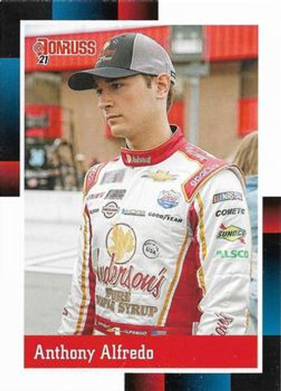 The Anthony Alfredo 2021 Donruss NASCAR #132 Base card is 1 of 42 Anthony Alfredo's card variations in the 2021 Donruss NASCAR set being tracked by Sports Card Investor, including #80 Base, #132 Carolina Blue, #80 Carolina Blue, #132 Orange, and #80 Orange.