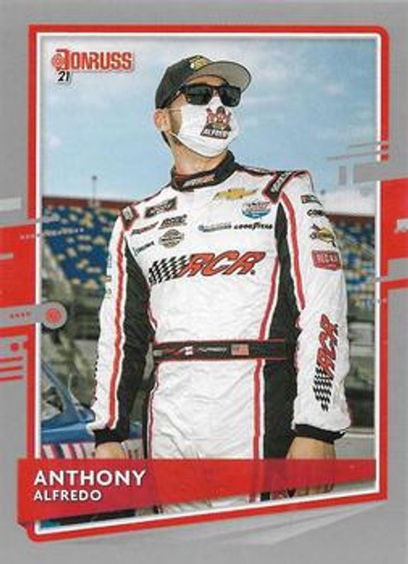 The Anthony Alfredo 2021 Donruss NASCAR #80 Silver card is 1 of 42 Anthony Alfredo's card variations in the 2021 Donruss NASCAR set being tracked by Sports Card Investor, including #80 Base, #132 Base, #132 Carolina Blue, #80 Carolina Blue, and #132 Orange.
