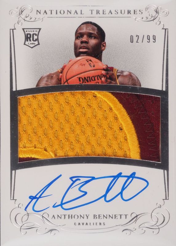 Anthony Bennett's Basketball cards are available in at least 37 sets. Anthony Bennett's biggest 7-day price movers are 2013 National Treasures #106 Rookie Patch Auto /99, 2016 Donruss #50 Signatures Series, and 2016 Donruss #37 Elite Signatures /99.