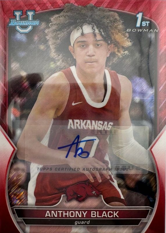 Auctions Ending Soon for Anthony Black 2022 Bowman Chrome University #58 Prospect Autographs - Red Shimmer Refractor /5 (1st) RAW