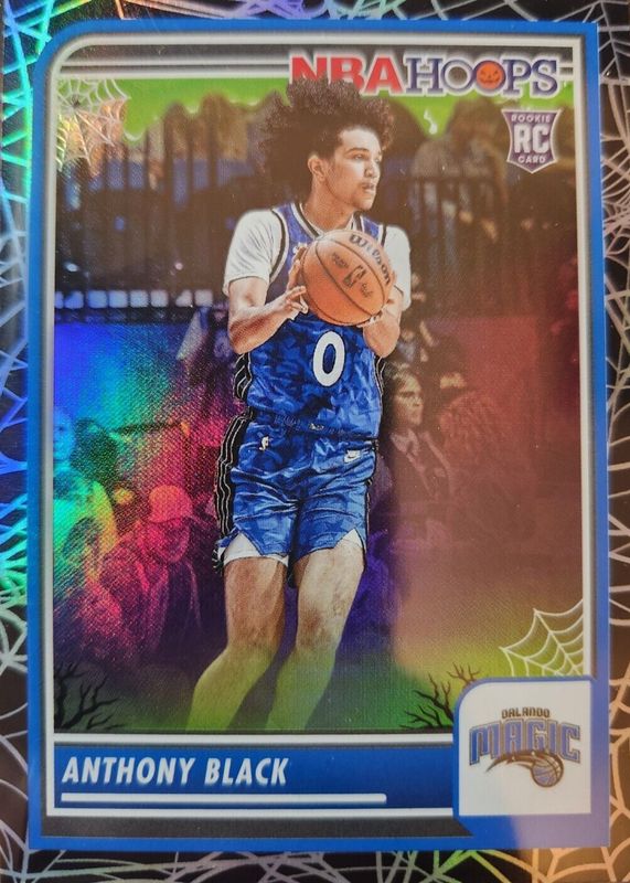The Anthony Black 2023 Haunted Hoops #88 Holo Webs Rookie card in Raw condition has not changed in price in the last 30 days and was last sold for $4.99 .