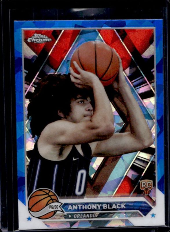 The Anthony Black 2023 Topps Chrome Sapphire Edition #186 Base Rookie card is 1 of 23 Anthony Black's card variations in the 2023 Topps Chrome Sapphire Edition set being tracked by Sports Card Investor, including Gold /50, Orange /25, Purple /10, Red /5, and Padparadscha /1.