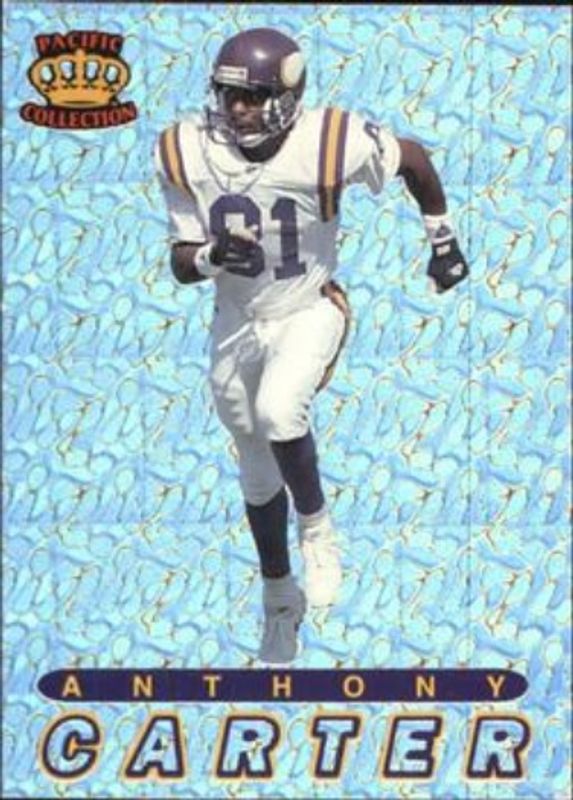 The Anthony Carter 1994 Pacific Prisms #20 Base card is 1 of 2 Anthony Carter's card variations in the 1994 Pacific Prisms set being tracked by Sports Card Investor, including Gold.