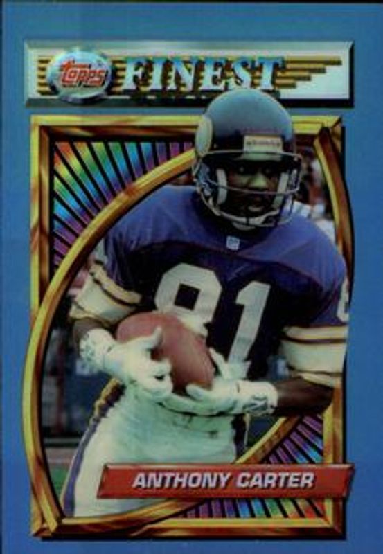 The Anthony Carter 1994 Topps Finest #155 Refractors card is 1 of 2 Anthony Carter's card variations in the 1994 Topps Finest set being tracked by Sports Card Investor, including Base.