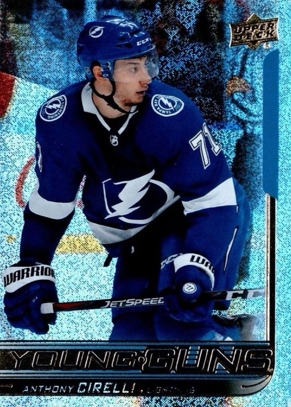 Anthony Cirelli's Hockey cards are available in at least 55 sets. Anthony Cirelli's biggest 7-day price movers are 2018 Upper Deck #219 Young Guns - Speckled Rainbow Foil, 2018 O-Pee-Chee Platinum #154 Seismic Gold /50, and 2018 O-Pee-Chee Coast to Coast #156 Red.