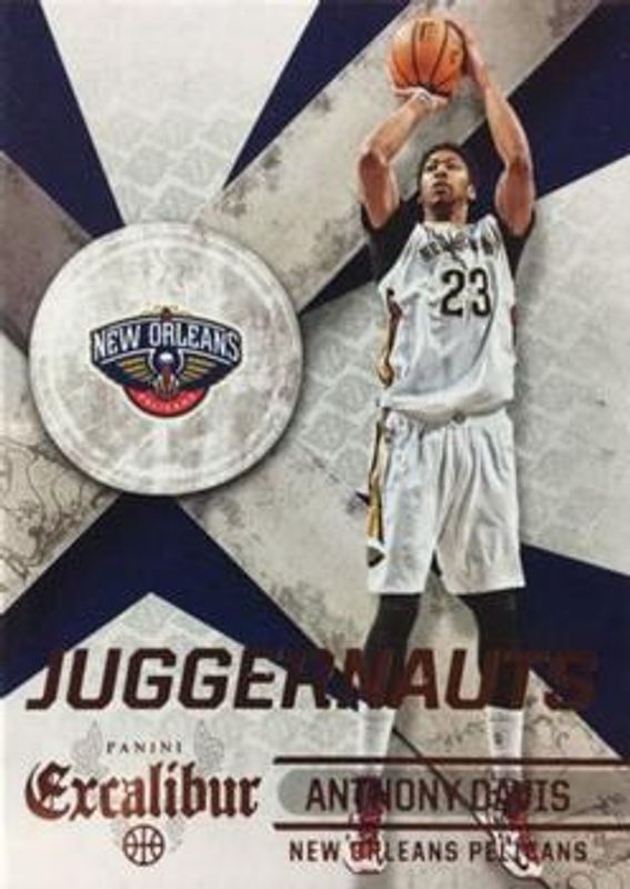The Anthony Davis 2014 Excalibur #16 Juggernauts card is 1 of 43 Anthony Davis' card variations in the 2014 Excalibur set being tracked by Sports Card Investor, including Base, Blue, Knights Templar, Orange, and Silver /49.