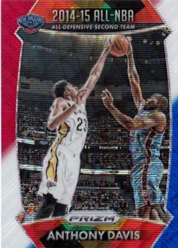 The Anthony Davis 2015 Prizm #395 Red White Blue card is 1 of 59 Anthony Davis' card variations in the 2015 Prizm set being tracked by Sports Card Investor, including #55 Base, #376 Base, #395 Base, #55 Flash, and #376 Flash.