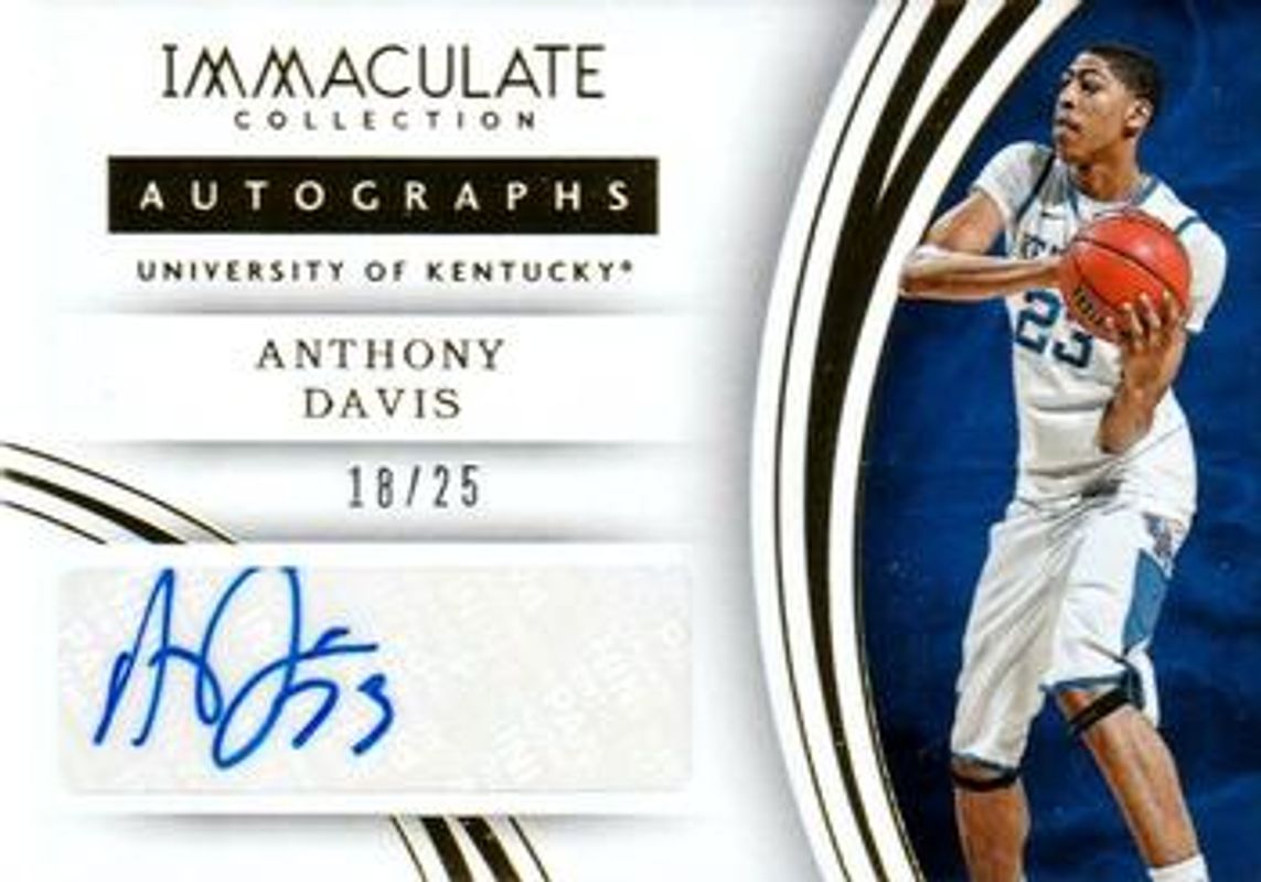 The Anthony Davis 2016 Immaculate Collegiate #92 Autographs /25 card is 1 of 11 Anthony Davis' card variations in the 2016 Immaculate Collegiate set being tracked by Sports Card Investor, including Base /99, Red /25, Blue /10, Gold /5, and Platinum /1.