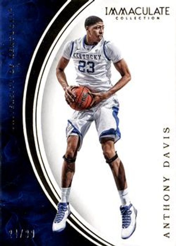 The Anthony Davis 2016 Immaculate Collegiate #3 Base /99 card is 1 of 11 Anthony Davis' card variations in the 2016 Immaculate Collegiate set being tracked by Sports Card Investor, including Red /25, Blue /10, Gold /5, Platinum /1, and Autographs /25.