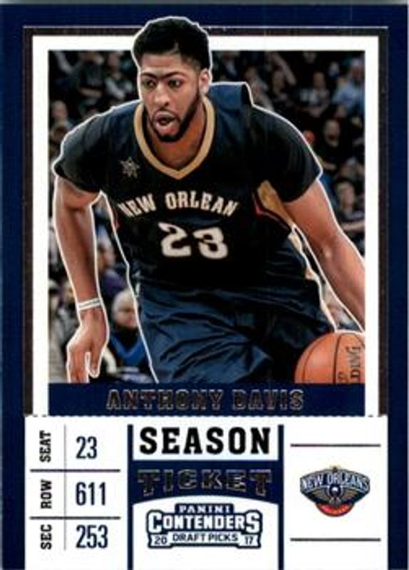 The Anthony Davis 2017 Contenders Draft Picks #2a Base card is 1 of 23 Anthony Davis' card variations in the 2017 Contenders Draft Picks set being tracked by Sports Card Investor, including Base, Draft Ticket /99, Draft Ticket Variation /99, Cracked Ice Ticket /23, and Cracked Ice Ticket Variation /23.