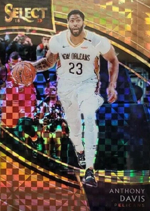 This card is 1 of 8 Anthony Davis' card variations in the 2018 Select set being tracked by Sports Card Investor, including Courtside Silver, Courtside Zebra /(SSP), Courtside Tie-Dye /25, Courtside FOTL Neon Orange Pulsar /13, and Courtside Gold /10.