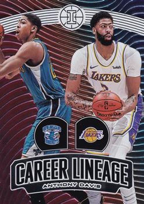 The Anthony Davis 2019 Illusions #21 Career Lineage card is 1 of 69 Anthony Davis' card variations in the 2019 Illusions set being tracked by Sports Card Investor, including Base, Trophy Collection Bronze, Trophy Collection Emerald, Trophy Collection Orange, and Trophy Collection Pink.