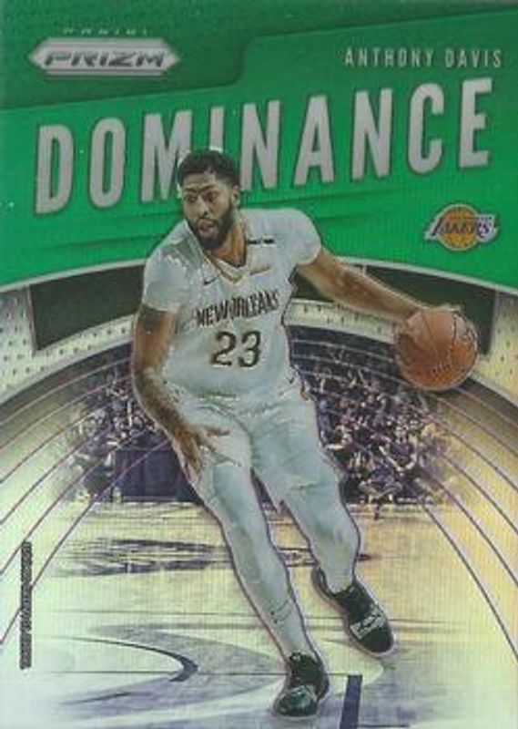 The Anthony Davis 2019 Prizm #2 Dominance - Green card is 1 of 72 Anthony Davis' card variations in the 2019 Prizm set being tracked by Sports Card Investor, including Base, Choice Blue Yellow Green, Fanatics Green Ice, Fast Break, and FOTL Blue Shimmer.