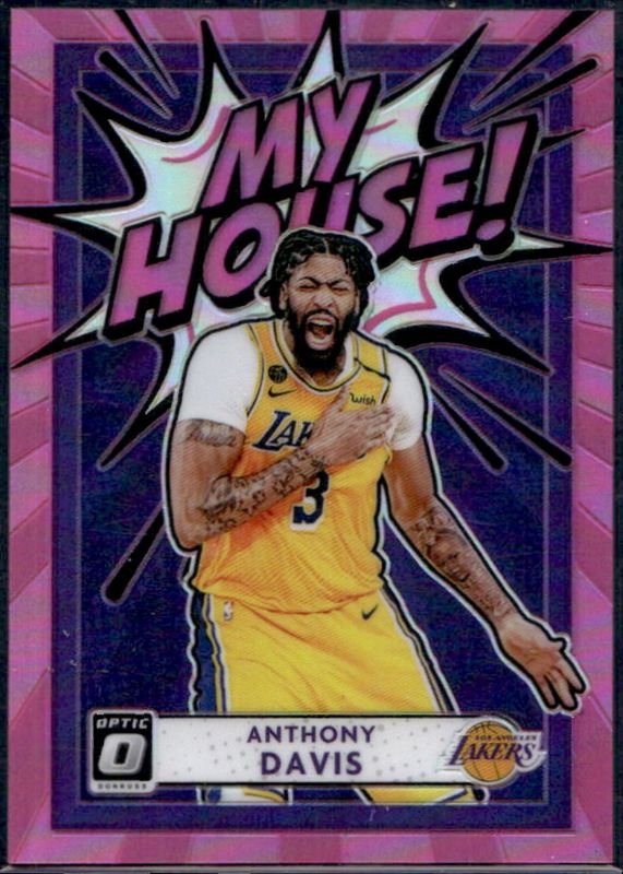 The Anthony Davis 2020 Optic #20 My House! - Pink /25 card is 1 of 108 Anthony Davis' card variations in the 2020 Optic set being tracked by Sports Card Investor, including Base, Blue Pulsar, Blue Velocity, Checkerboard, and Choice Red & Green.