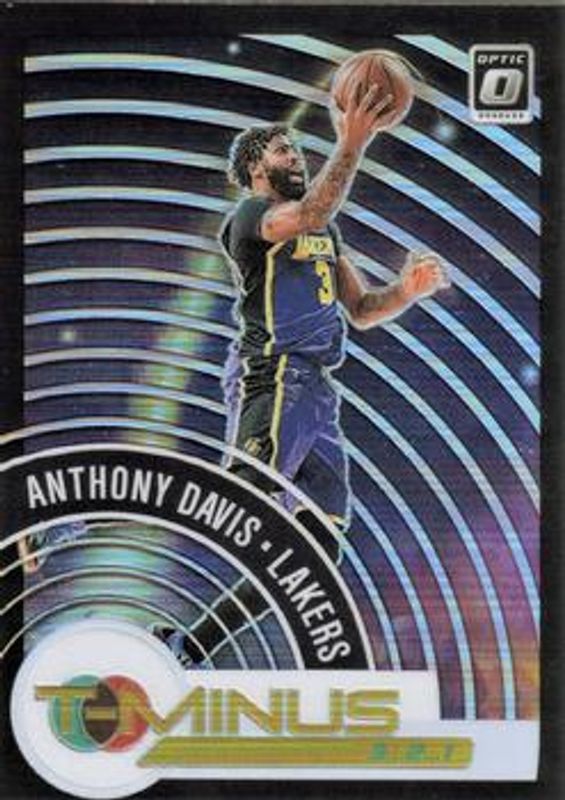 The Anthony Davis 2020 Optic #2 T-Minus 3...2...1... - Holo card is 1 of 108 Anthony Davis' card variations in the 2020 Optic set being tracked by Sports Card Investor, including Base, Blue Pulsar, Blue Velocity, Checkerboard, and Choice Red & Green.