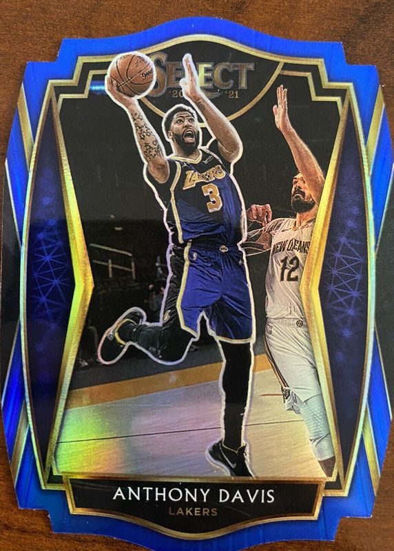 2020-21 Panini Select Premier Level Blue Prizm Die-Cut Anthony Davis #'d 105/249