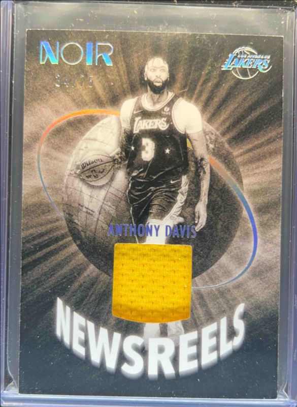The Anthony Davis 2021 Noir #NWJ-ATD Newsreels Jerseys /75 card is 1 of 24 Anthony Davis' card variations in the 2021 Noir set being tracked by Sports Card Investor, including #203 Base /99, #60 Base /99, #130 Base /99, #130 Holo Silver /35, and #60 Holo Silver /35.