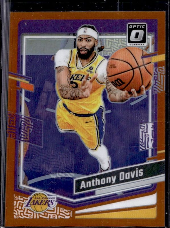 The Anthony Davis 2023 Optic #144 Orange /199 card is 1 of 65 Anthony Davis' card variations in the 2023 Optic set being tracked by Sports Card Investor, including Base, Blue Velocity, Checkerboard, Choice Red & Green, and Fast Break.