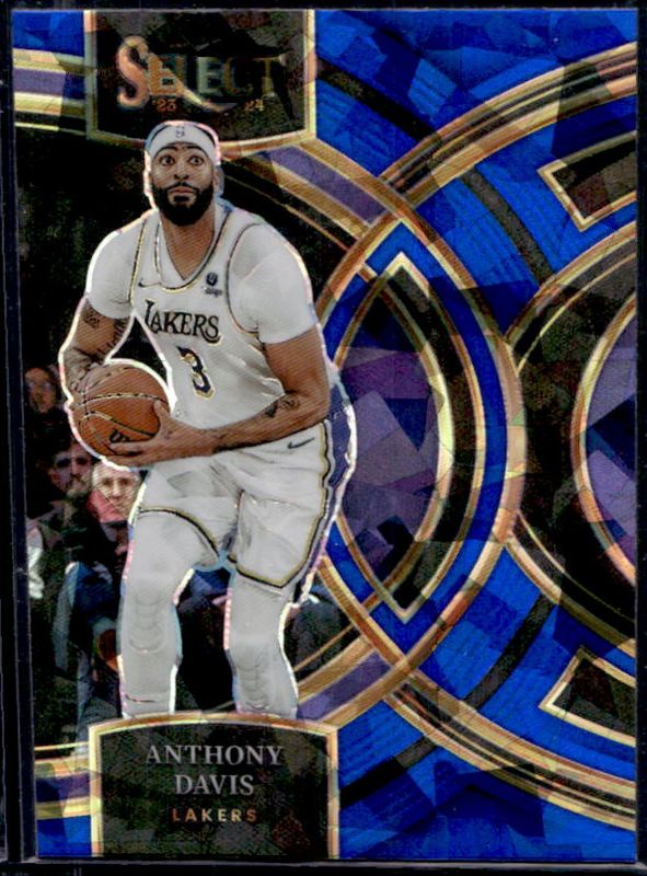 The Anthony Davis 2023 Select #181 Premier Level Blue Cracked Ice card is 1 of 219 Anthony Davis' card variations in the 2023 Select set being tracked by Sports Card Investor, including Concourse, Courtside, Mezzanine, Premier Level, and Concourse Blue Cracked Ice.