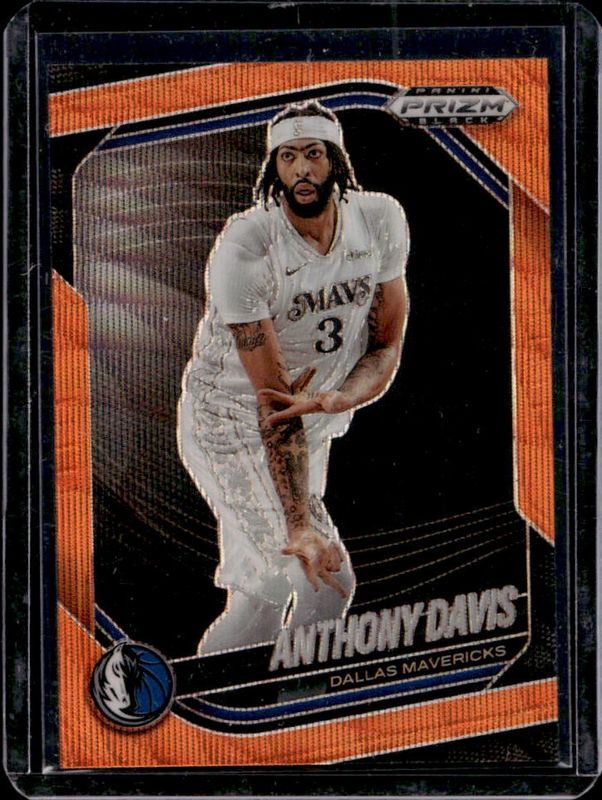 The Anthony Davis 2024 Prizm Black #177 Orange Wave /60 card is 1 of 45 Anthony Davis' card variations in the 2024 Prizm Black set being tracked by Sports Card Investor, including Base, Hyper, Pulsar, Ruby Wave, and Silver.