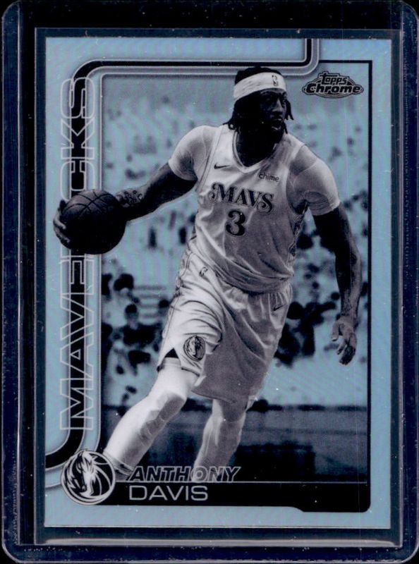The Anthony Davis 2025 Topps Chrome #96 Negative Refractor card is 1 of 147 Anthony Davis' card variations in the 2025 Topps Chrome set being tracked by Sports Card Investor, including Base, Basketball Refractor, Box Set Refractor, Image Variation, and Lightboard Logo Refractor.