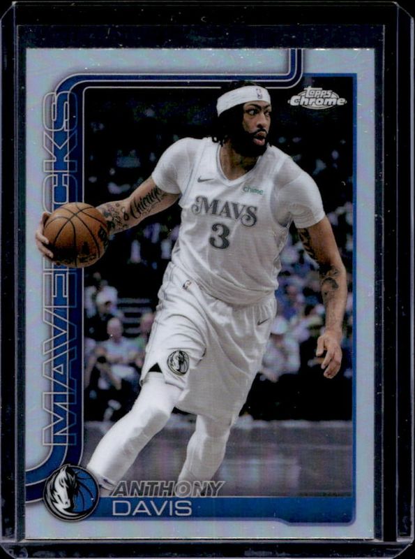 The Anthony Davis 2025 Topps Chrome #96 Refractor card is 1 of 147 Anthony Davis' card variations in the 2025 Topps Chrome set being tracked by Sports Card Investor, including Base, Basketball Refractor, Box Set Refractor, Image Variation, and Lightboard Logo Refractor.