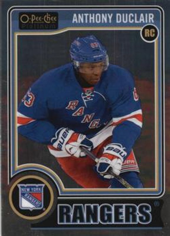 The Anthony Duclair 2014 O-Pee-Chee Platinum #169b Base Rookie card is 1 of 25 Anthony Duclair's card variations in the 2014 O-Pee-Chee Platinum set being tracked by Sports Card Investor, including Base, Platinum Traxx, Rainbow, White Ice /199, and Red Prism /135.