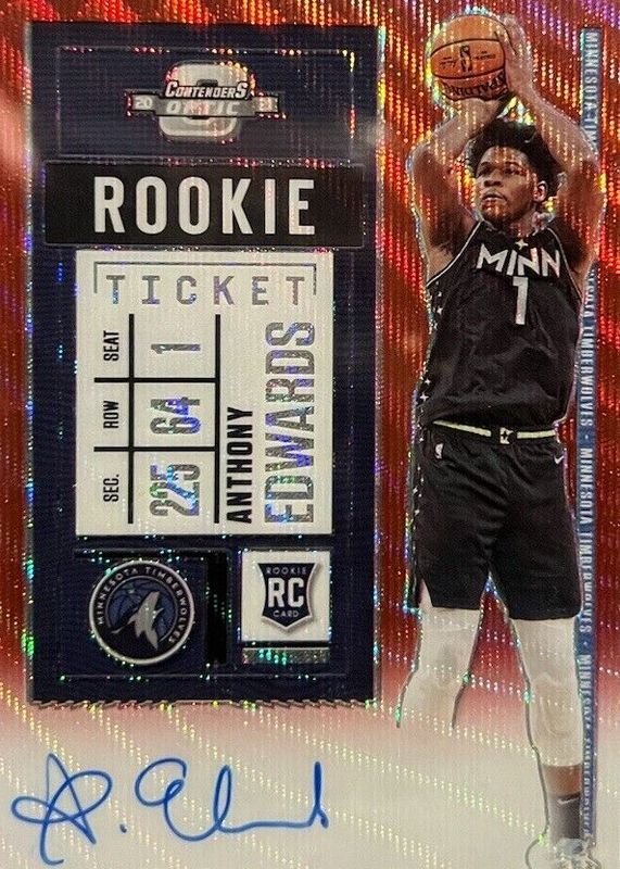 Auctions Ending Soon for Anthony Edwards 2020 Contenders Optic #137 Rookie Ticket Auto - Red Wave (Shooting) RAW