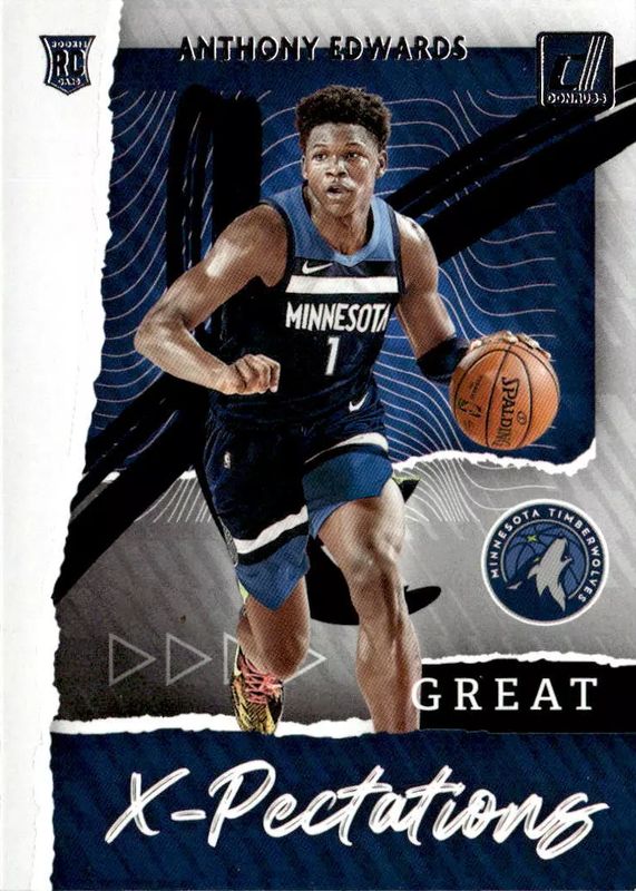 The Anthony Edwards 2020 Donruss #1 Great X-Pectations Rookie card in Raw condition has moved up $4.51 (+227%) in the last 30 days and was last sold for $6.50 .